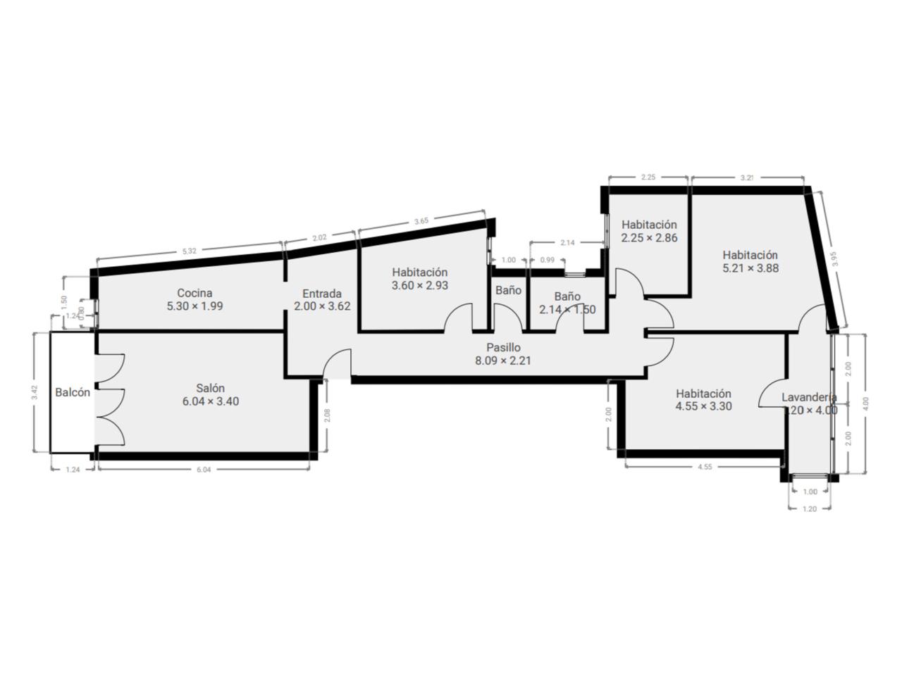 Con una superficie total de 102 m² y distribuido en una cocina grande con mucho almacenaje, 1 habitación individual y 3 habitaciones dobles muy amplias con armarios empotrados y todas exteriores.